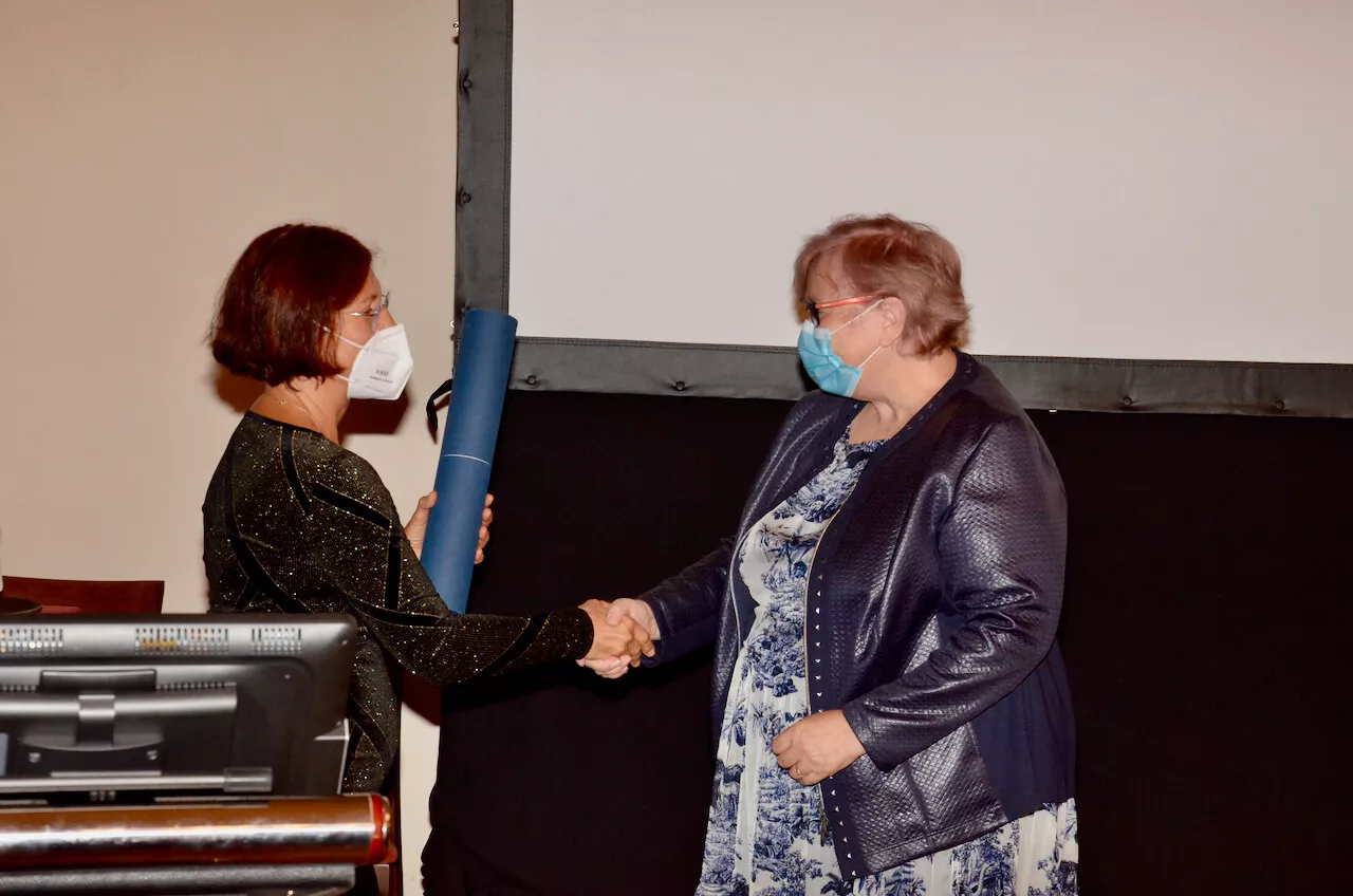 Z rukou předsedkyně společnosti prof. Martiny Vašákové převzala čestné členství ČPFS také Mgr. Jana Zelenková, vrchní sestra Pneumologické kliniky 2. LF UK a FN Motol v Praze.