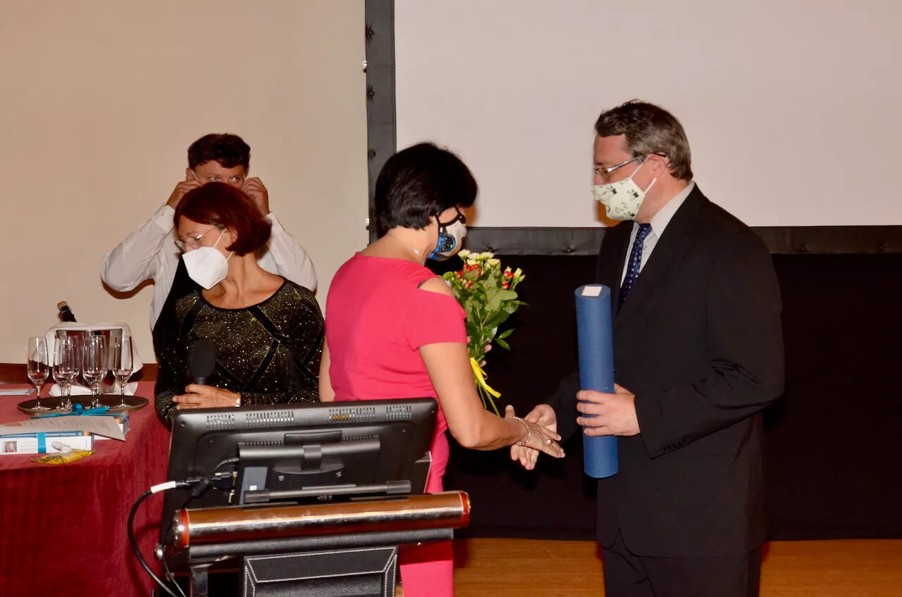 Z rukou první místopředsedkyně České pneumologické a ftizeologické společnosti ČLS JEP MUDr. Ivany Čierné Peterové přijal čestné členství ČPFS také doc. MUDr. Libor Fila, Ph.D., nově zvolený přednosta Pneumologické kliniky 2. LF UK a FN Motol v Praze.